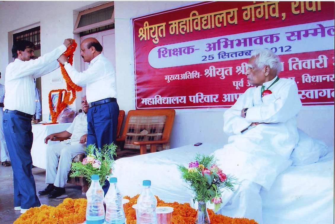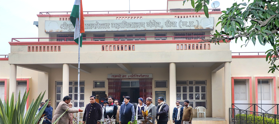 The Illustrious institution “ Shriyut College Gangeo” founded by “ Shriyut Shiksha Samiti Rewa” at Gangeo, which is famous for its ever flowing greenery Janpad of “Vindhya Vasundhara ” of Madhya pradesh. This college was formally inaugurated by the then vidhan sabha adhyaksh Honorable Pt. Shriyut Shrinivas Tiwari on 17th September 2000. While addressing the audience shri Tiwari said It is his desire that this college will be developed as a model institution. It would maintain the norms of higher educational quality by providing the best education to students in every sphere. This fully equipped college with all the necessary infrastructure for higher learning was inaugurated by the then Chief Minister Madhya Pradesh, Honorable Shri Digvijay Singh on 17th September, 2001 during the Amrit Mahotsav to celebrate the birthday of the patron of the college Pt. Shriyut Shrinivas Tiwari.